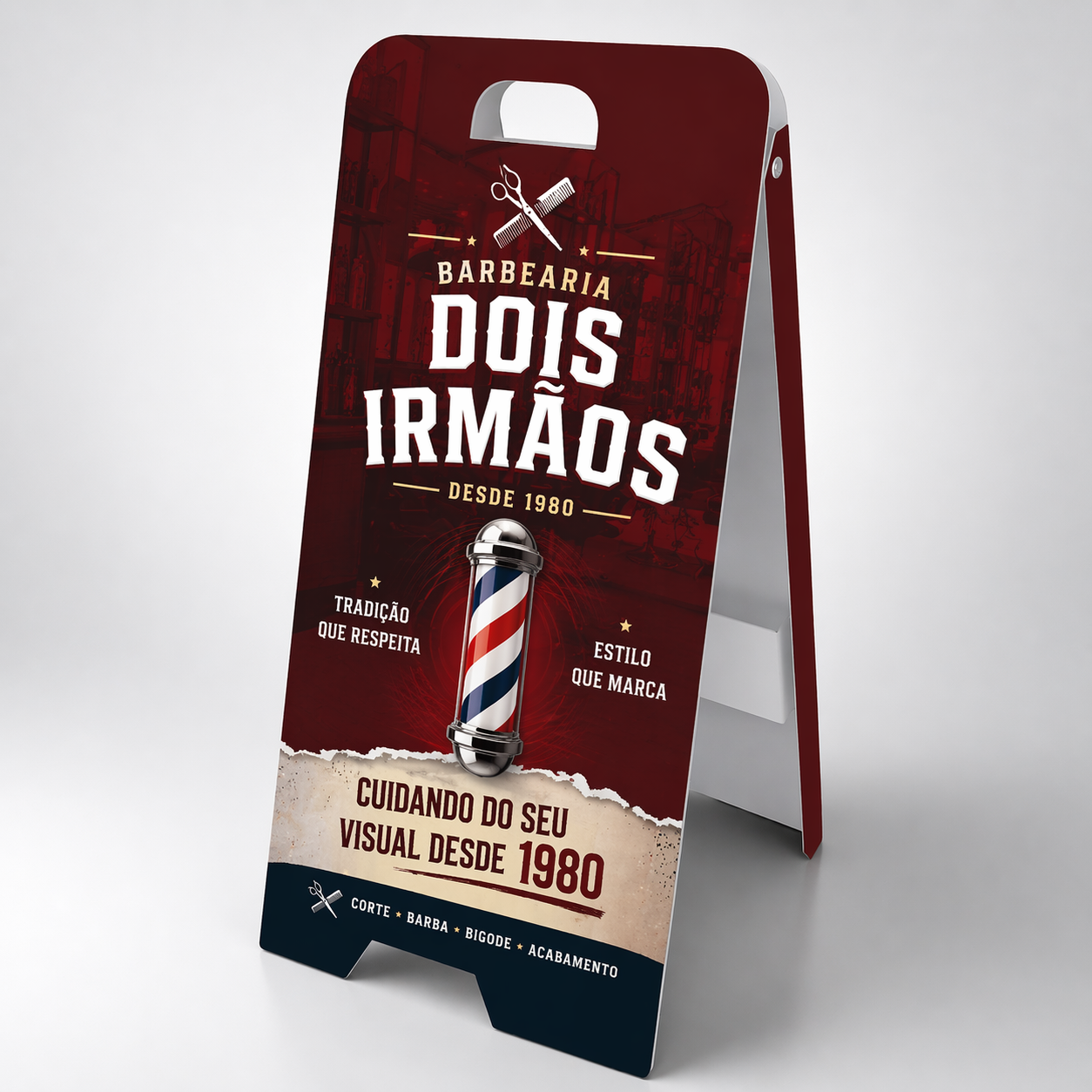 O Cavalete em PS 2mm é uma solução prática, resistente e altamente visual para divulgação promocional em calçadas, entradas de lojas, eventos e pontos de venda.